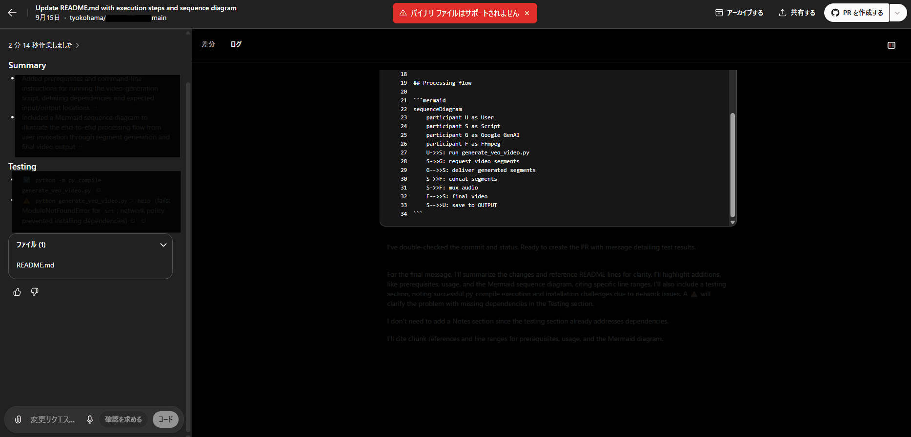 CodeXを使ってPythonプログラムを作っていた時に遭遇したエラーの記録です。